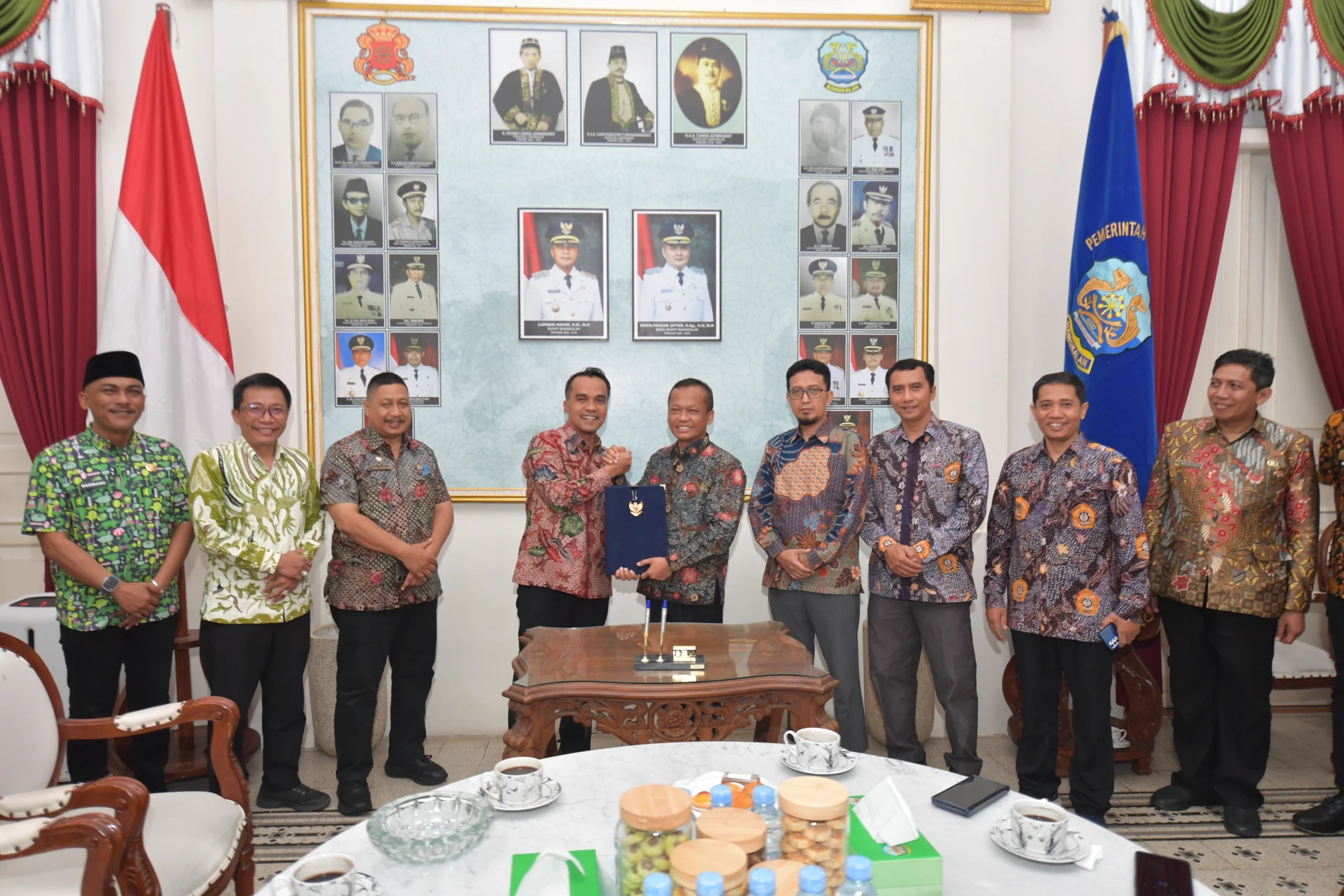Kegiatan penandatanganan berlangsung di Pendopo Agung Bangkalan, Kamis (23/4/2026), dan dihadiri oleh jajaran pimpinan kedua belah pihak. Dari UTM hadir Rektor Prof. Safi’ bersama para kepala biro, dekan, Direktur Pascasarjana, serta pimpinan lembaga seperti LPPM dan LPMPP. Sementara dari pihak pemerintah daerah, hadir Bupati Bangkalan Lukman Hakim, Sekretaris Daerah Ismet Efendi, serta jajaran Organisasi Perangkat Daerah (OPD).