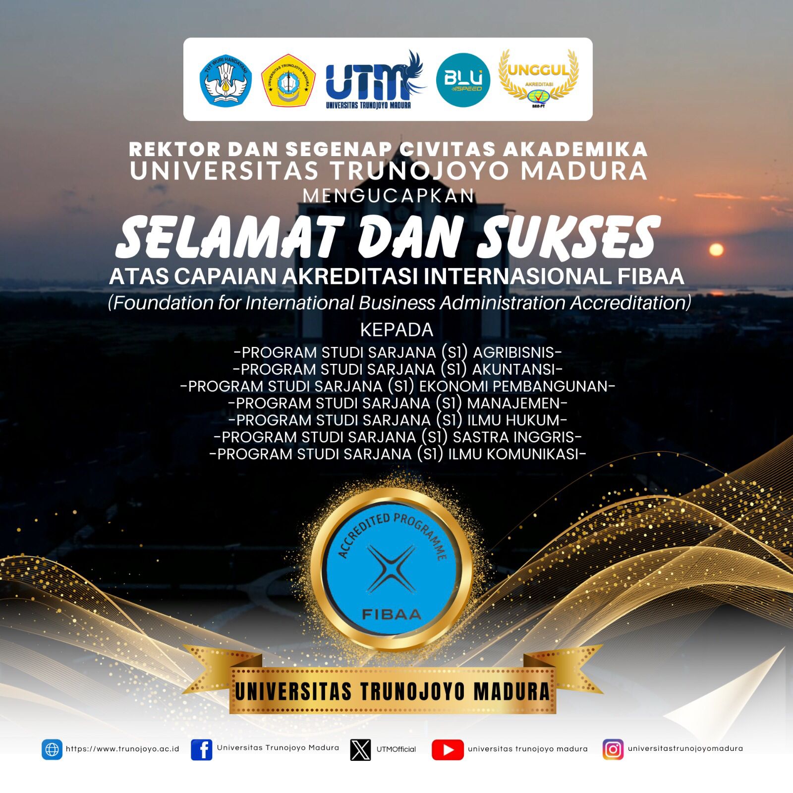 Universitas Trunojoyo Madura (UTM) kembali mencatatkan prestasi membanggakan di kancah pendidikan tinggi. Sebanyak tujuh program studi di universitas ini berhasil meraih akreditasi internasional dari Foundation for International Business Administration Accreditation (FIBAA), sebuah lembaga akreditasi bergengsi yang berbasis di Jerman.