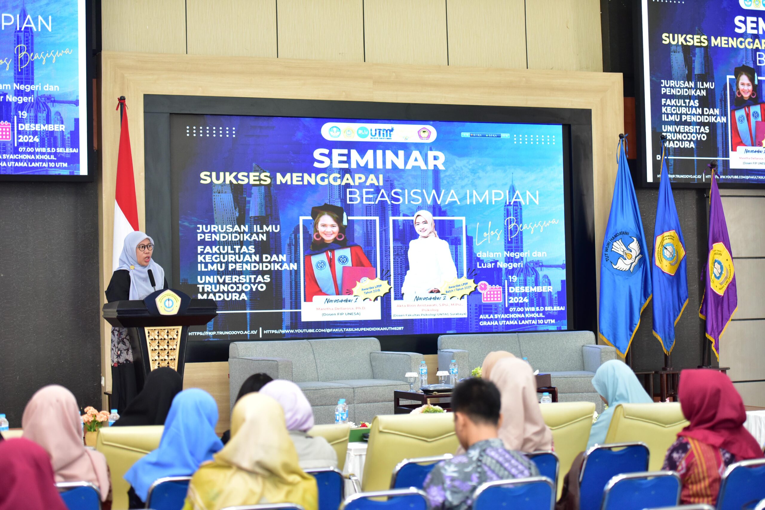 Bangkalan 19 Desember 2024, Jurusan Ilmu Pendidikan Fakultas Keguruan dan Ilmu Pendidikan (FKIP) sukses menggelar seminar bertajuk “Sukses Menggapai Beasiswa Impian: Lolos Beasiswa Dalam Negeri dan Luar Negeri.” Acara ini berlangsung meriah di Aula Syaichona Muhammad Kholil, Gedung Rektorat lantai 10.