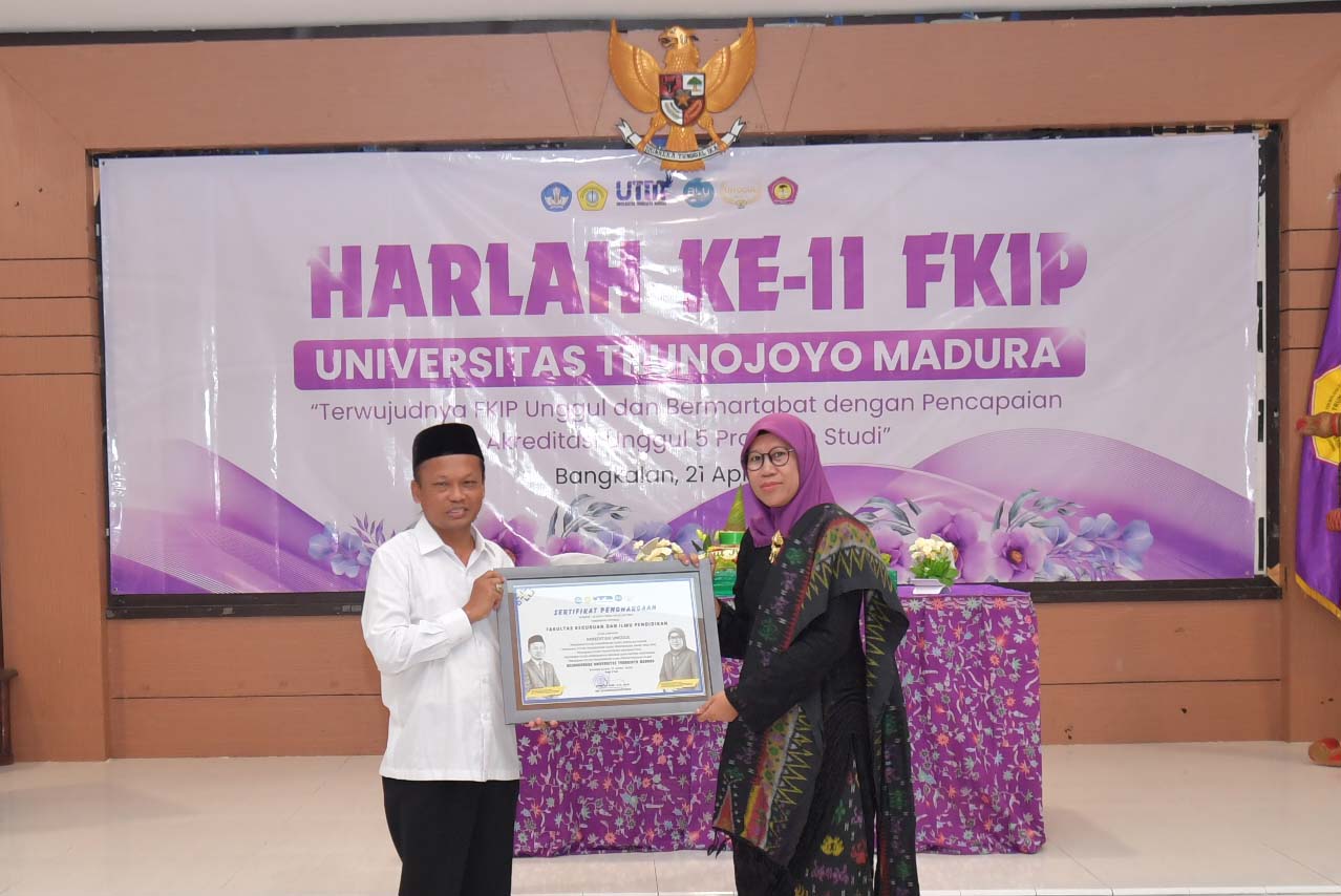 Bangkalan, 21 April 2025 – Fakultas Keguruan dan Ilmu Pendidikan (FKIP) Universitas Trunojoyo Madura (UTM) merayakan Hari Lahir (Harlah) ke-11 dengan mengusung tema “Terwujudnya FKIP Unggul dan Bermartabat dengan Pencapaian Akreditasi Unggul 5 Program Studi”. Acara digelar secara khidmat di Gedung Pascasarjana lantai 2 UTM, bertepatan dengan peringatan Hari Kartini.