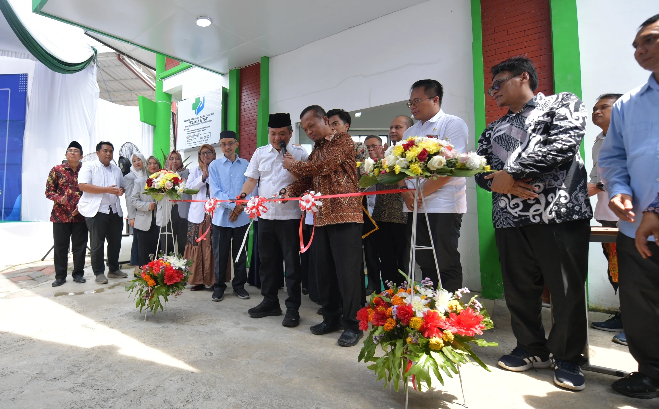 Acara dilanjutkan dengan pembacaan doa dan prosesi pemotongan pita sebagai tanda resmi dibukanya layanan Klinik Pratama UTM. Peresmian ini dirangkaikan dengan pemindahan Fasilitas Kesehatan (Faskes) BPJS Kesehatan secara simbolis, yang difasilitasi melalui layanan mobile service BPJS agar proses berjalan cepat dan praktis.
